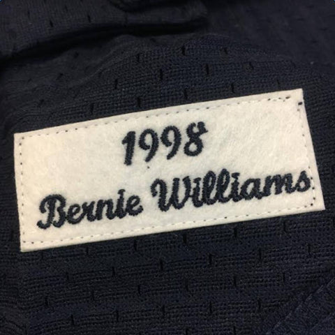 Graphic: Bernie Williams JerseyOrigin: ChinaMaterial: 100% PolyesterTwill logo and number.100% polyester mesh body.Bernie Williams 1998 authentic m...