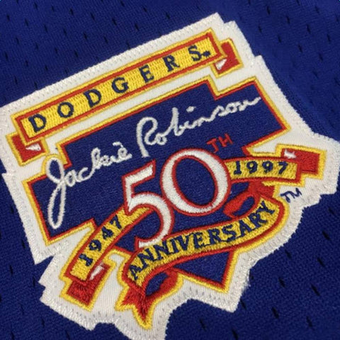 Graphic: Mike Piazza JerseyOrigin: ChinaMaterial: 100% PolyesterTwill logo, name, and numbers.Jackie Robinson 50th Anniversary patch on left sleeve...